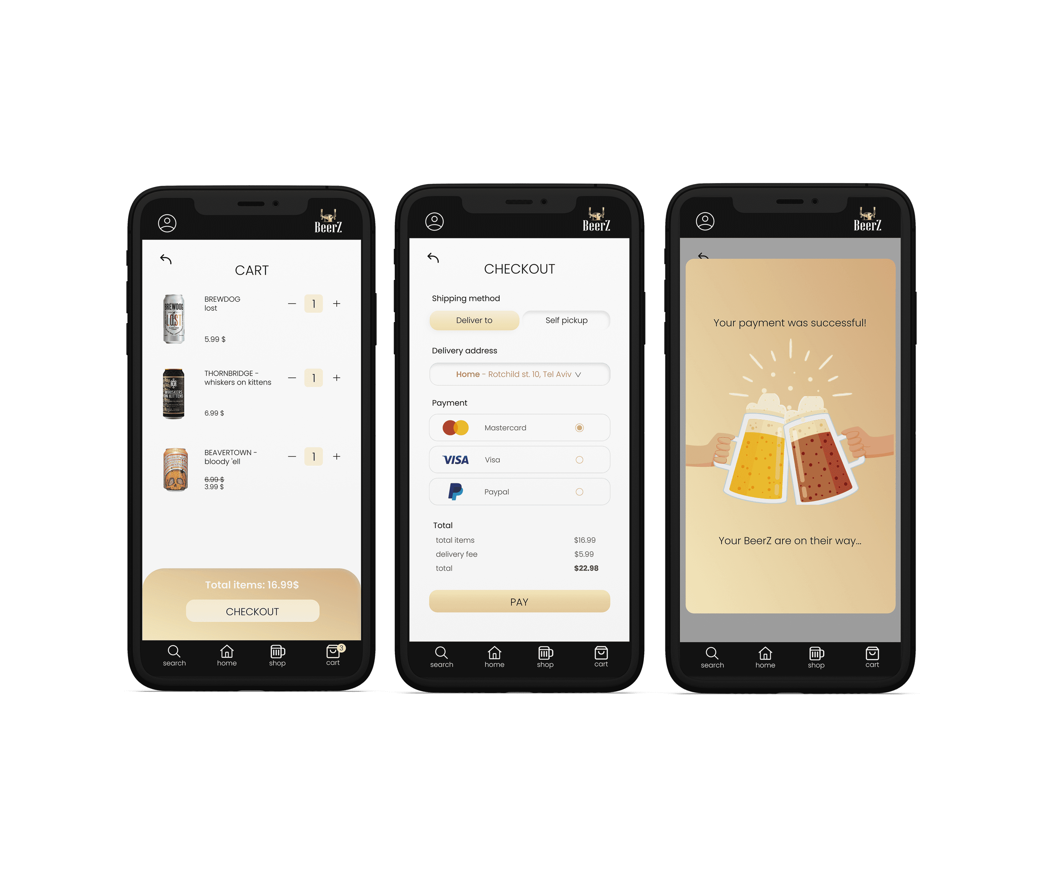 The owner of BeerZ wanted the Ecommerce app to be inviting, simple to use and fast to order, and mostly And especially that the app will reflect the special and colorful character of the place.